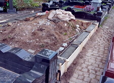После того, как работа была проведена, клиент посчитал, что в задней части места захоронения требуется дополнительное укрепление. Мы вкрутили пять дополнительных свай, сварили новую сетку и залили ещё одну площадку, которая будет являться основанием для памятников.